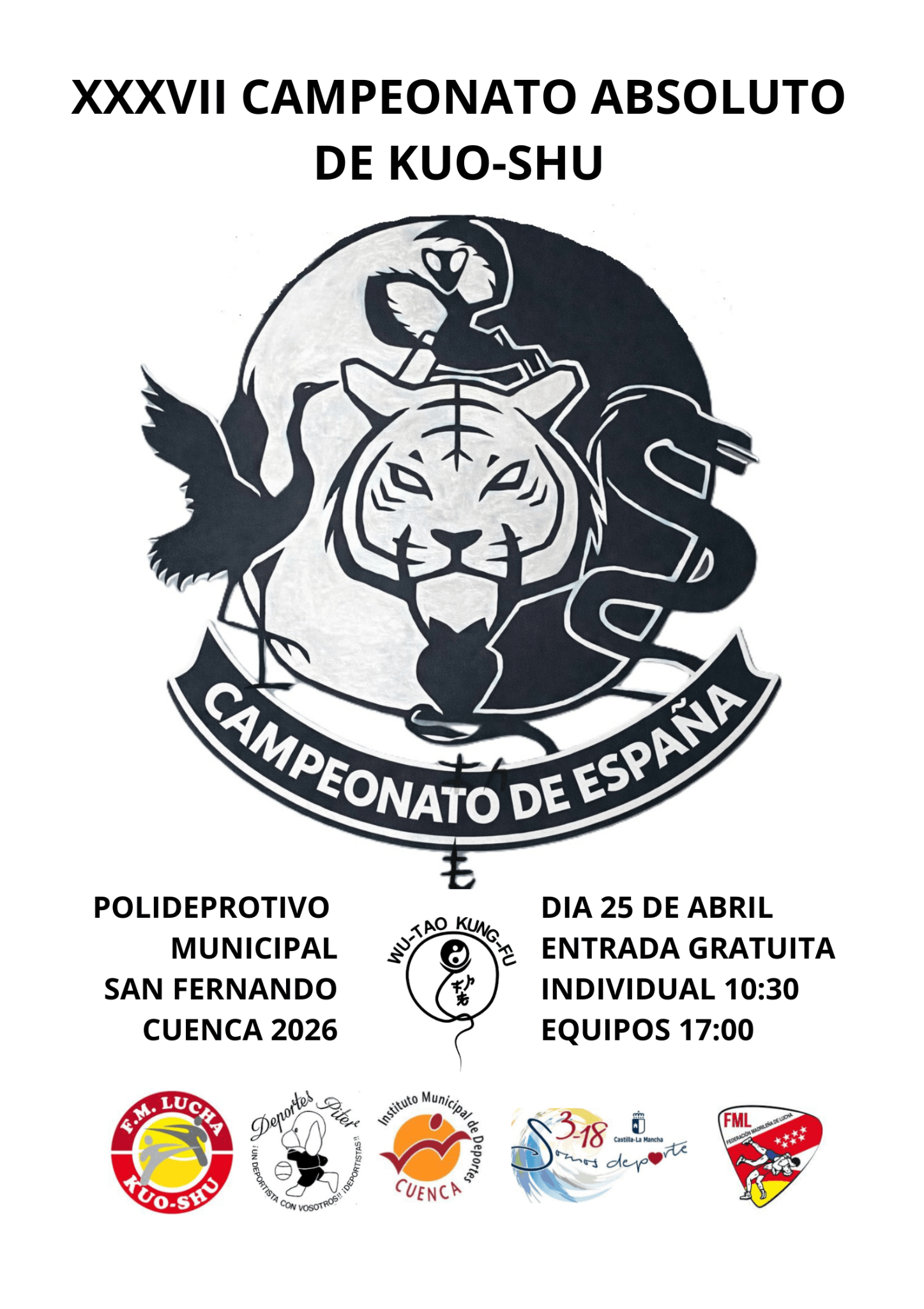 El próximo 25 de abril de 2026 se celebrará en Cuenca el XXXVII Campeonato de España Absoluto de Kuo-Shu, una de las citas más importantes del calendario nacional del Departamento de Kuo-Shu de la Federación Madrileña de Lucha.